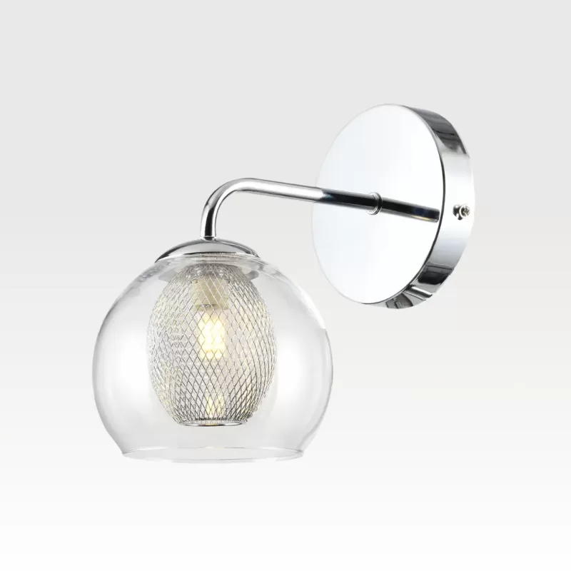Aplique de pared de acero y vidrio, acabado cromado; soporte G9 para un foco