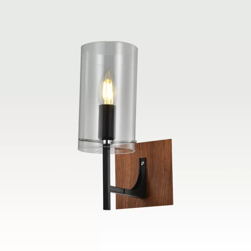 Aplique de pared de aluminio y vidrio, acabado maderado; soporte E14 para un foco