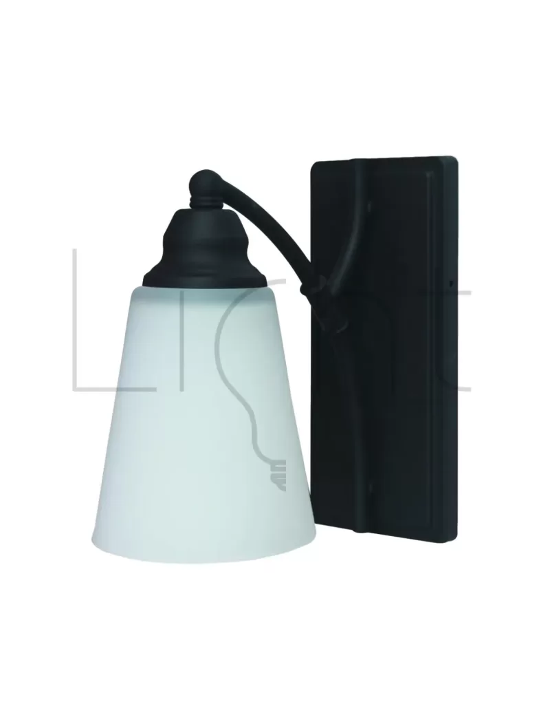 Aplique de pared de hierro y vidrio, acabado en color negro; soporte E27 para un foco