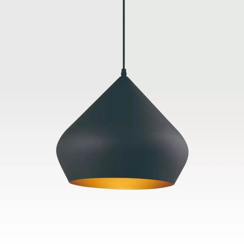 Lámpara colgante de acero, acabado en color negro y dorado; soporte E27 para un foco