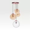 Lámpara colgante de acero y vidrio, acabado en color oro rosa con vidrio en color transparente y ámbar; soporte E27 para 5 focos