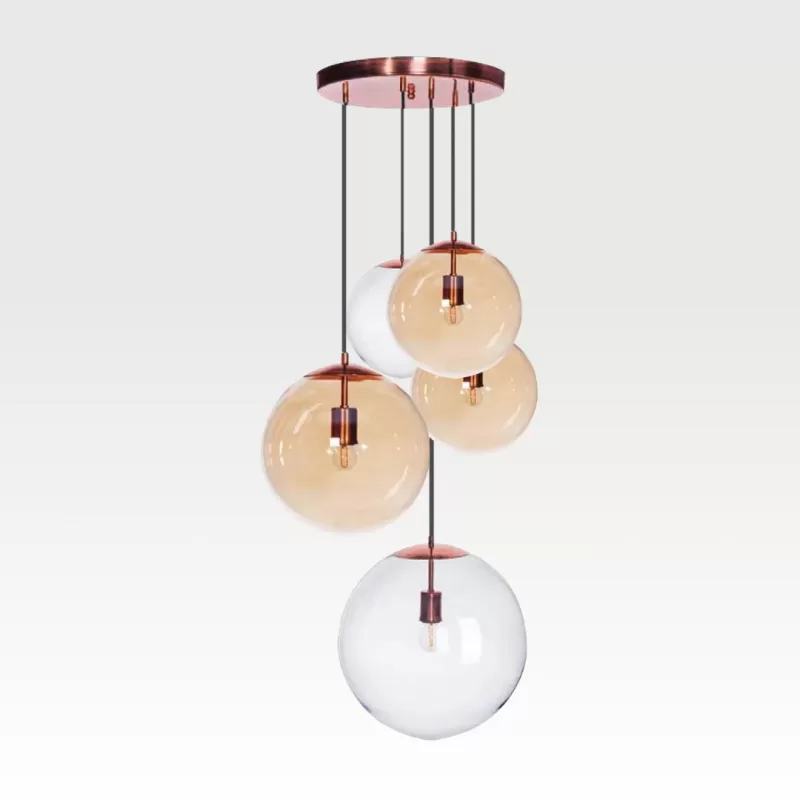 Lámpara Colgante 5 Luces E27 Cobre & Ámbar