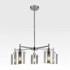 Lámpara colgante de acero y vidrio, acabado cromado; soporte E27 para 5 focos