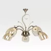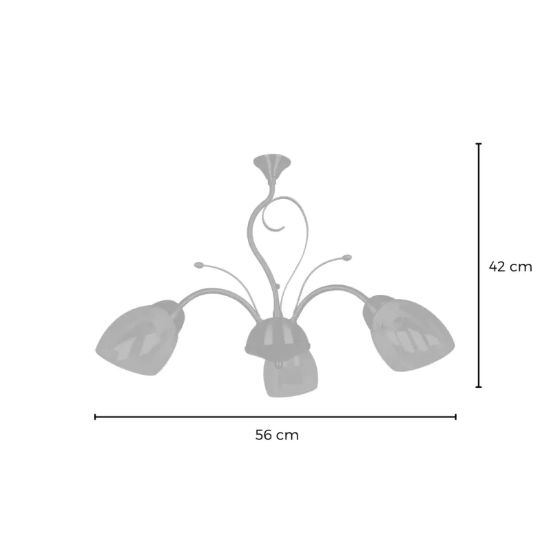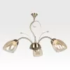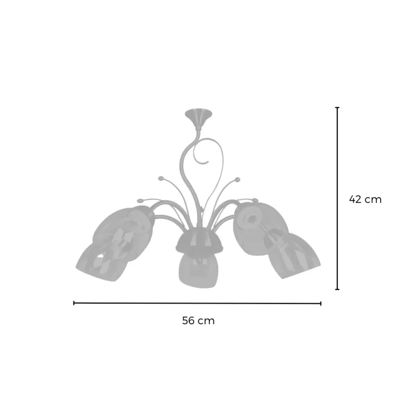 Lámpara colgante de acero y vidrio; acabado en color bronce con vidrio ámbar; soporte E27 para 5 o 3 luces