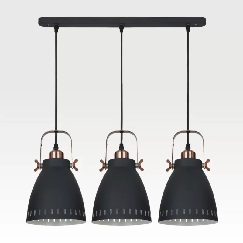 Lámpara colgante de acero, acabado en color negro y cobre; soporte E27 para 3 focos
