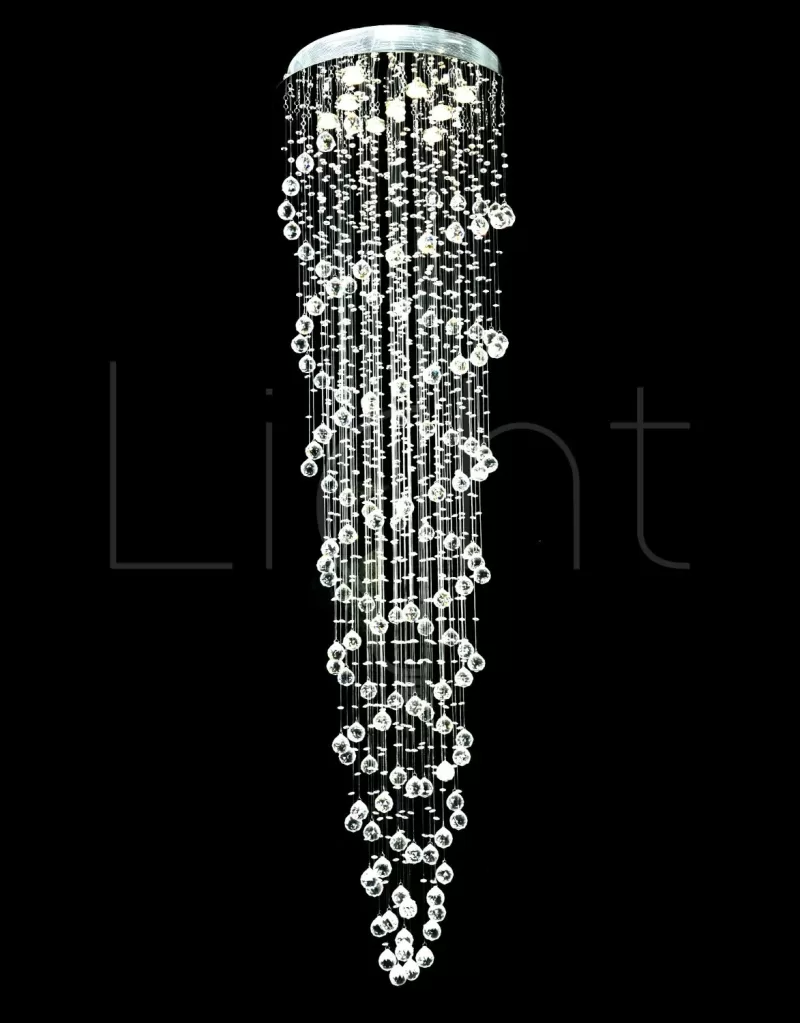 Lámpara colgante de acero y cristal, acabado cromado; soporte GU10 para 9 luces