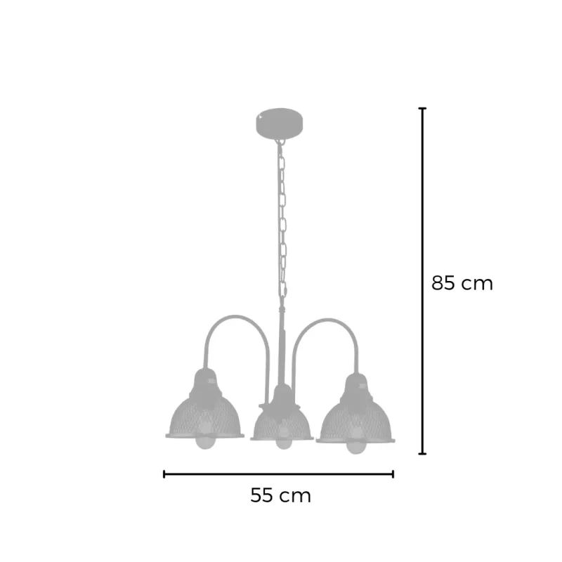 Lámpara colgante de acero, acabado en color negro con borde dorado; soporte E27 para 3 o 5 focos