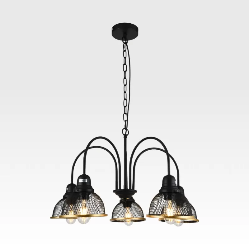 Lámpara Colgante E27 Negro & Dorado – 3 y 5 Luces