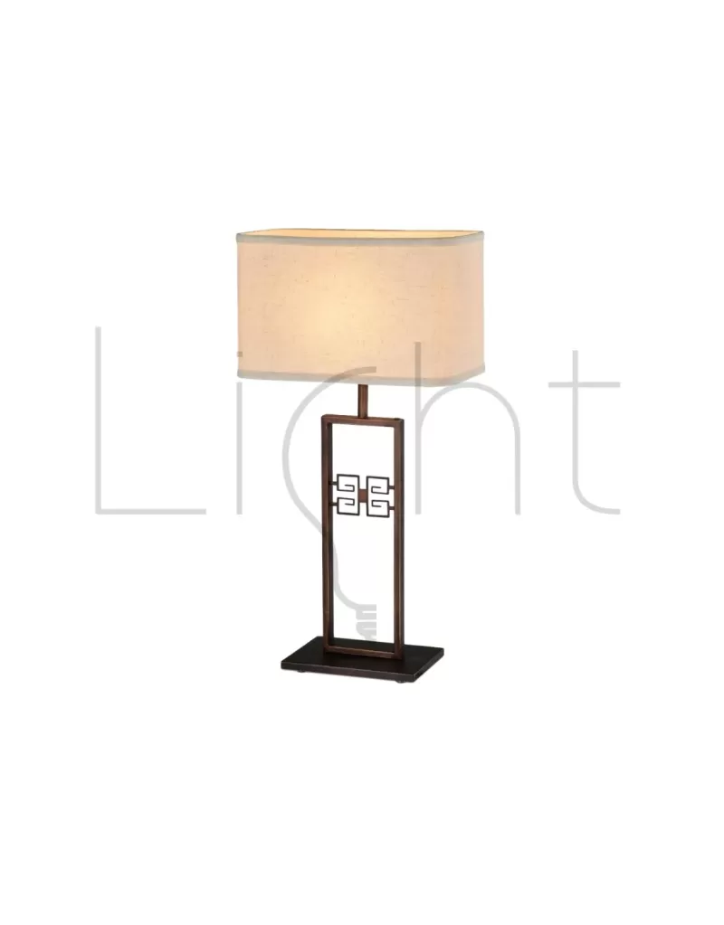 Lámpara de mesa de hierro con pantalla de tela, acabado en color negro envejecido; soporte E27 para un foco