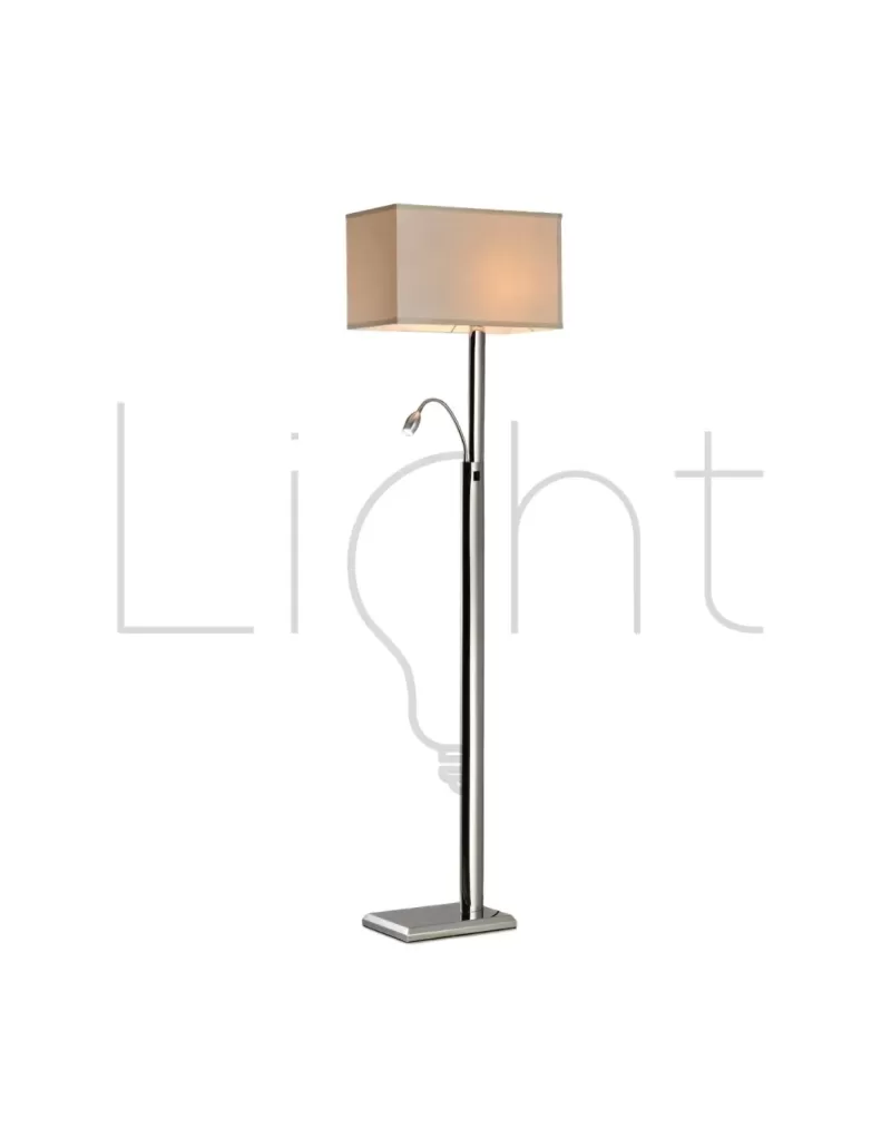 Lámpara de pie de acero inoxidable con pantalla de tela, acabado cromado; soporte E27 para un foco mas luz LED tipo cuello de ganso para lectura