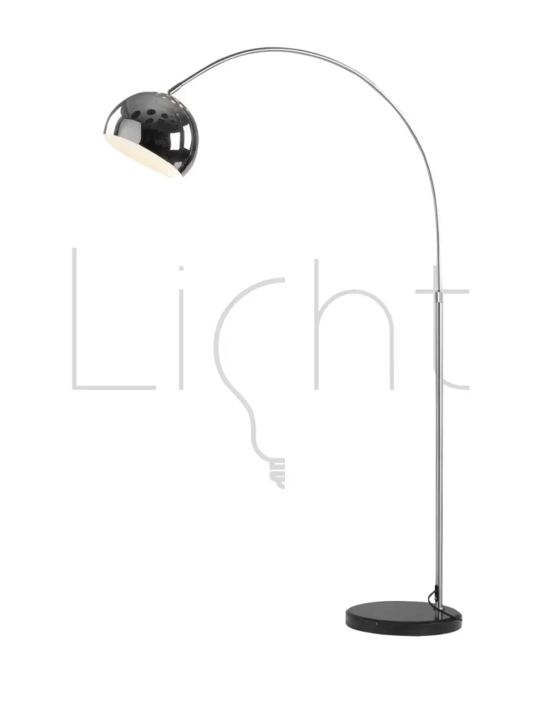 Lámpara de pie tipo arco de acero inoxidable y base de mármol, acabado cromado; soporte E27 para un foco