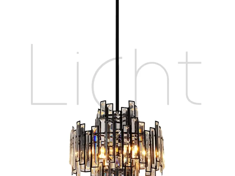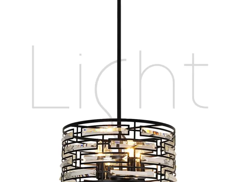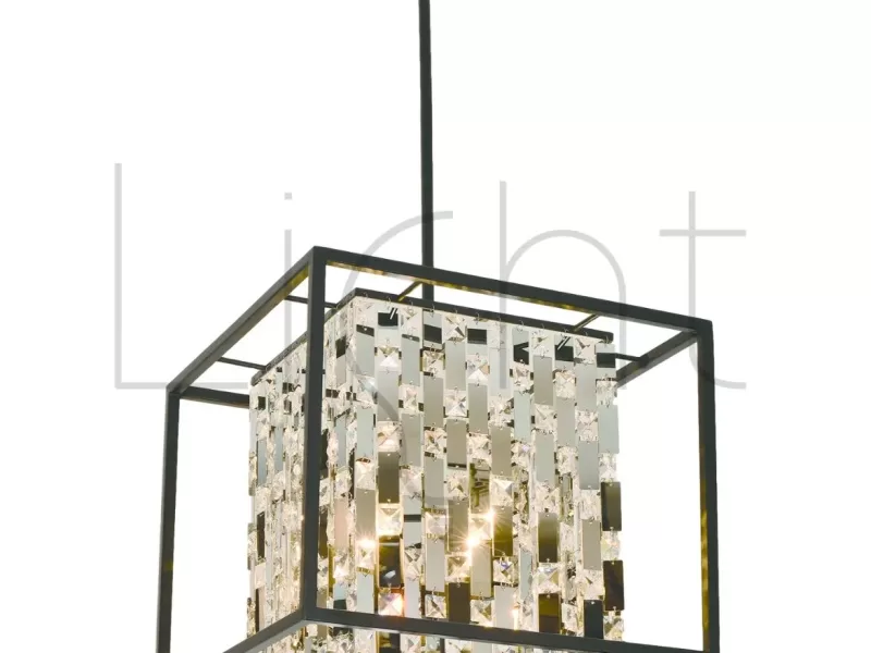 Lámpara Colgante Negra Hierro, Acero Inoxidable & Cristal 4L E14